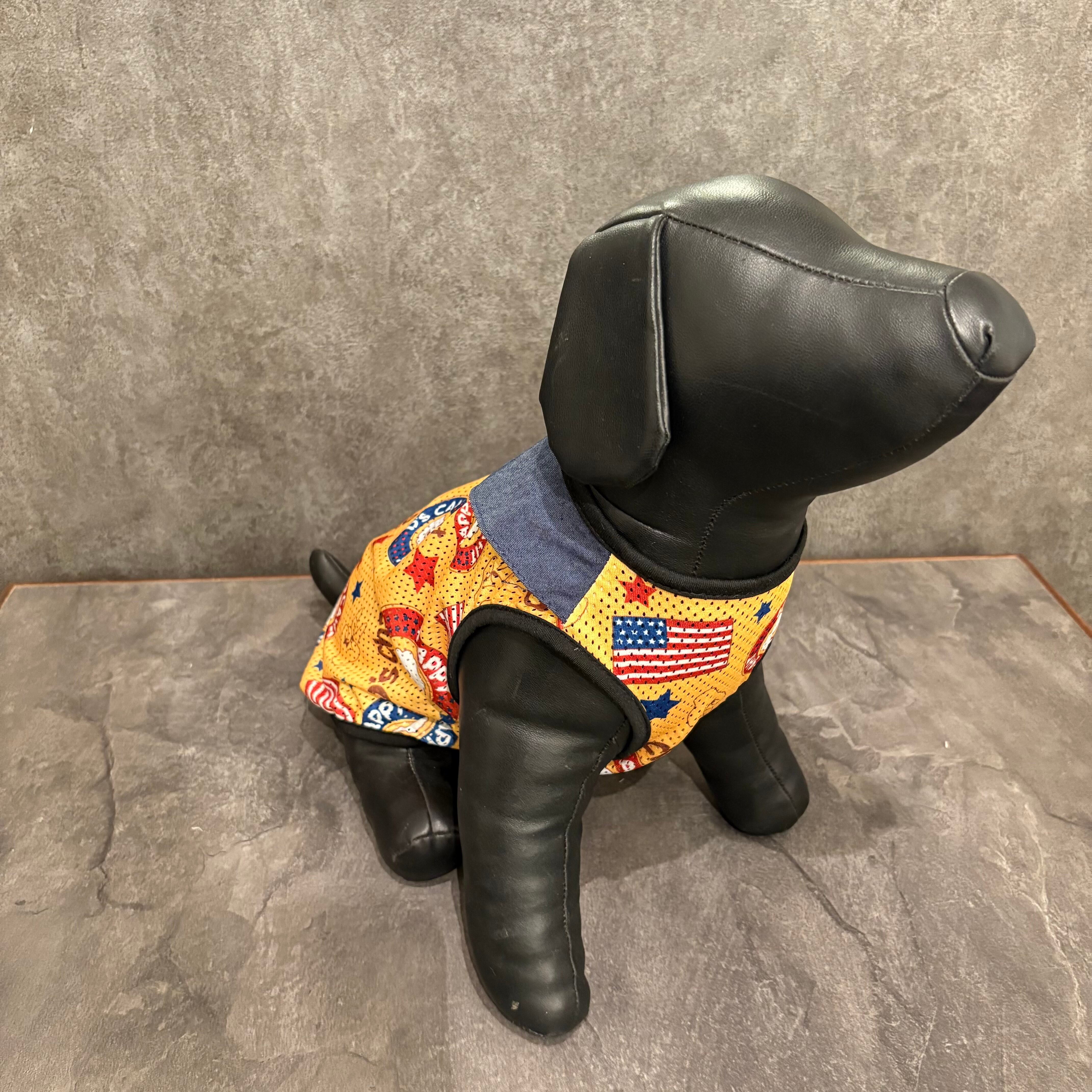 首元のデニムのバンダナがアクセントのメッシュ素材の1枚です♪